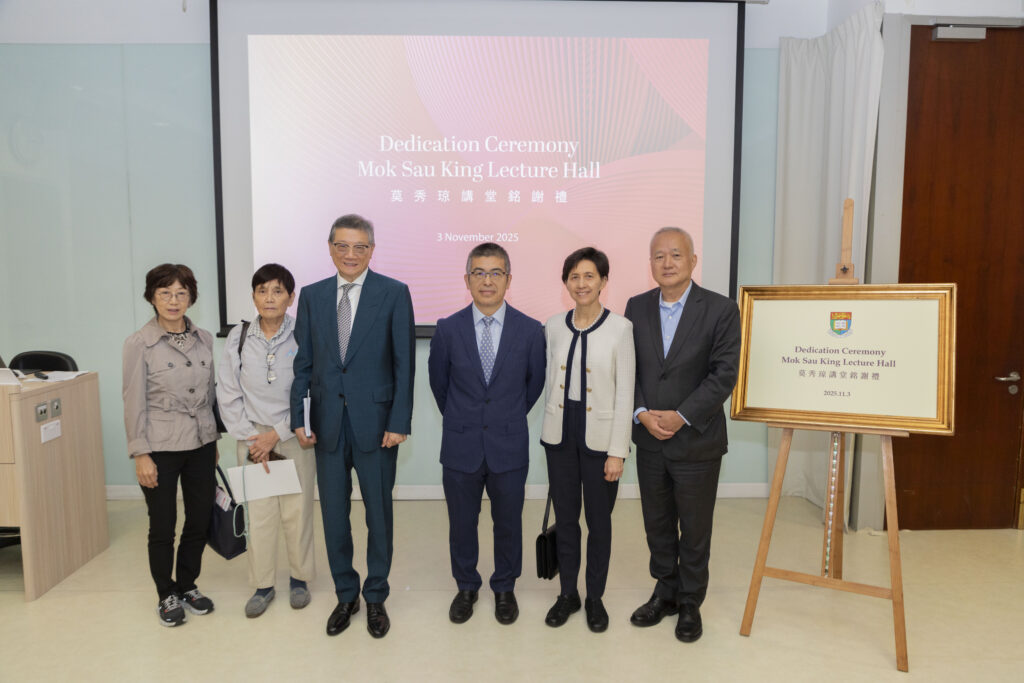 In recognition of late Madam Mok Sau-King‘s generous legacy gift, a teaching facility at the Centennial Campus now bears her name: the Mok Sau King Lecture Hall (莫秀琼講堂). Her generosity also enabled the creation of the Library Innovation Centre. Two named professorships further extend her legacy, supporting academic excellence for generations to come. The Dedication Ceremony for the Mok Sau King Lecture Hall was held on 3 November 2025.