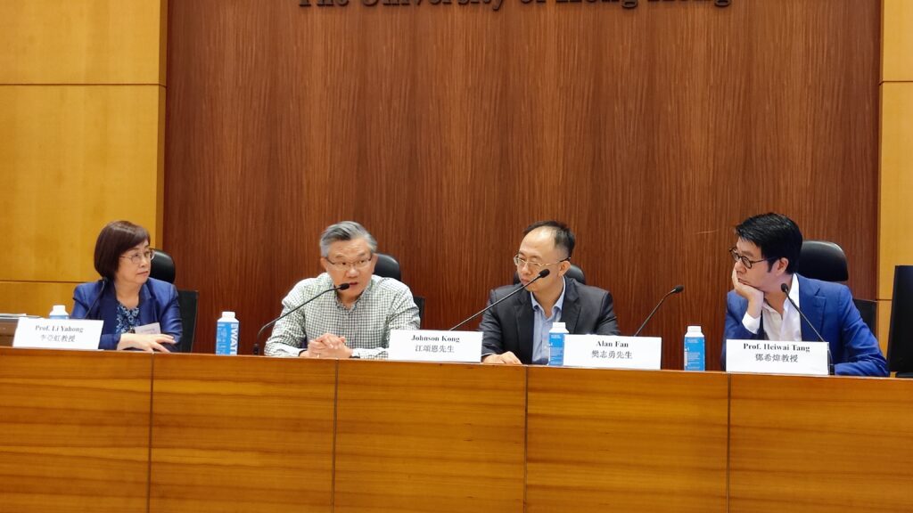 Finally, the forum concluded with a roundtable discussion moderated by Professor Yahong Li. Discussants included Professor Heiwai Tang, Mr. Alan Fan, Dr. Fan Shiliang, and Mr. Johnson Kong, Board Member of the International IP Commercialization Council. Together, they engaged in an in-depth exploration and future-oriented discussion on critical topics such as IP valuation mechanisms, dispute resolution, and regional collaboration, sharing their insights and visions for the future development of intellectual property utilization.