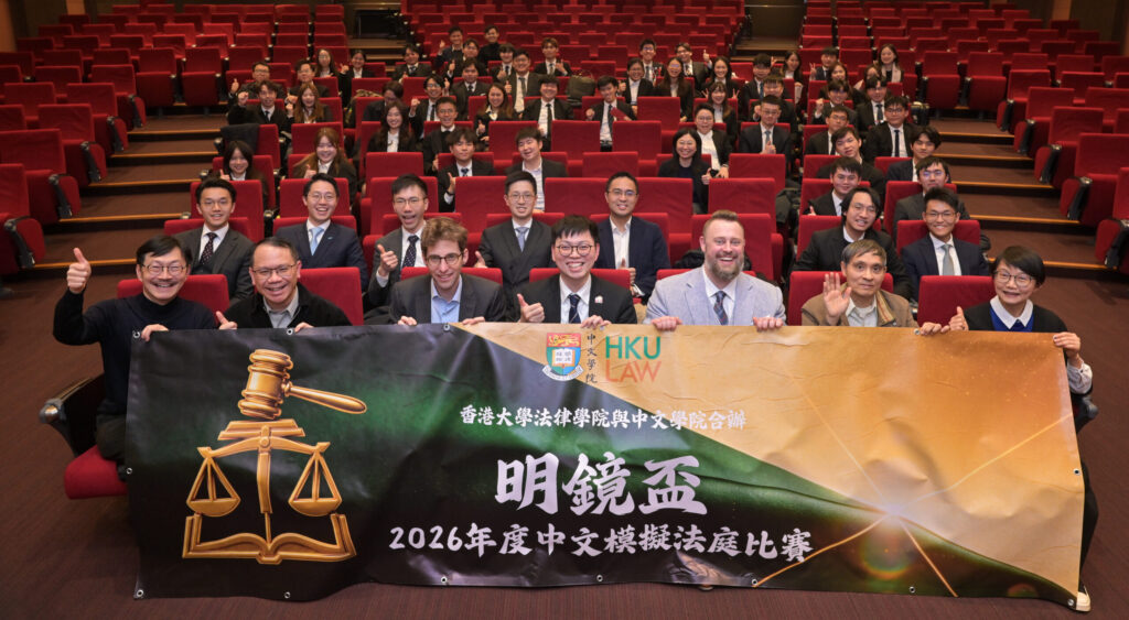 由香港大學法律學院與中文學院合辦的2026年度「明鏡盃」已於 2026 年 1 月 10 日(星期六)圓滿舉行。第一屆比賽於 2024 年舉行,今年首次開放予香港大學、香港中文大學及香港城市大學的所有高年級法律系學生參賽。
