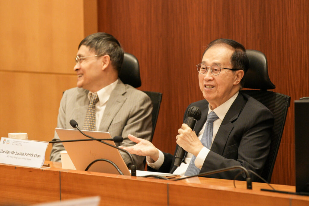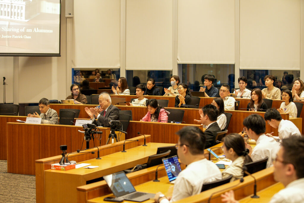 HKU Law was honoured to host the inaugural lecture of “Hong Kong’s Legal Journey” on 17 April 2026 in the Academic Conference Room, 11/F, Cheng Yu Tung Tower. We were privileged to have The Honourable Mr Justice Patrick Chan, NPJ, Hong Kong Court of Final Appeal, for sharing his experience, reminiscences, and stories from his law school days to his subsequent practice at the Hong Kong Bar and his judicial career in the Hong Kong courts. The lecture was moderated by Professor Albert Chen, HKU Faculty of Law. The opening speech was given by Professor Hualing Fu, Dean of the HKU Faculty of Law. Almost 100 attendees, including legal practitioners, professors, and law students, filled the Academic Conference Room.